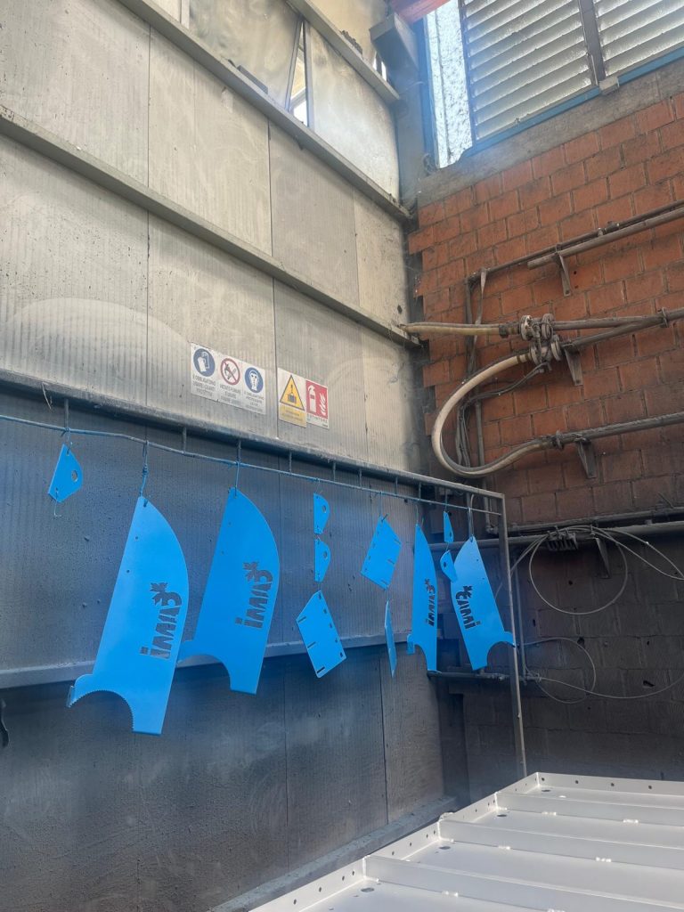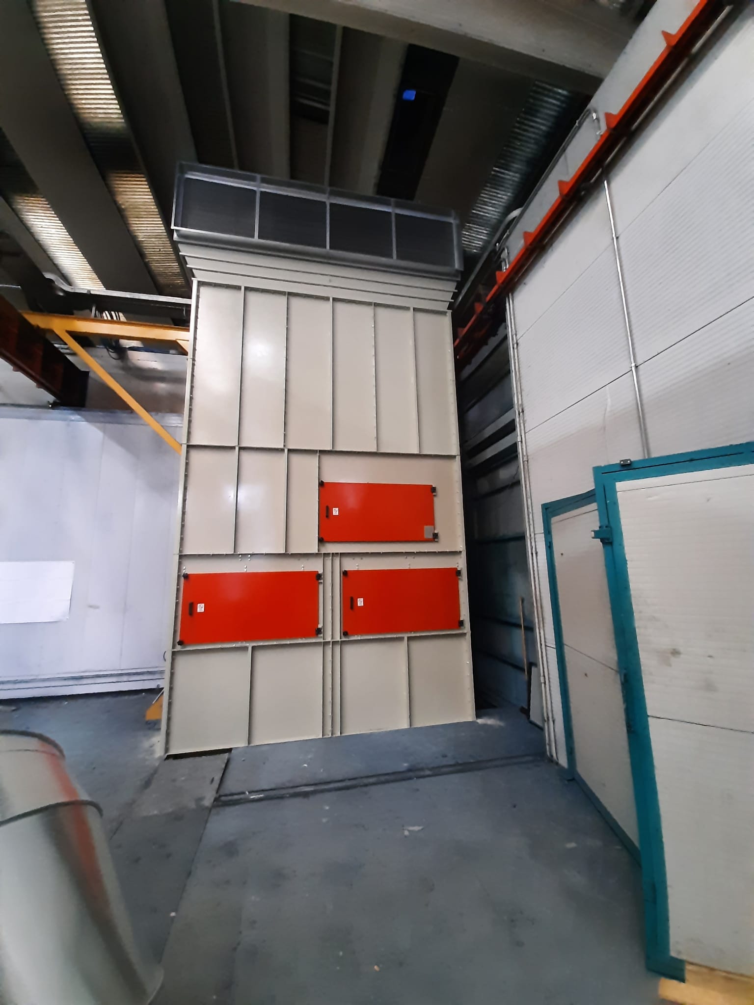 Instalação de jato de areia e pintura para grandes produtos metálicos.
